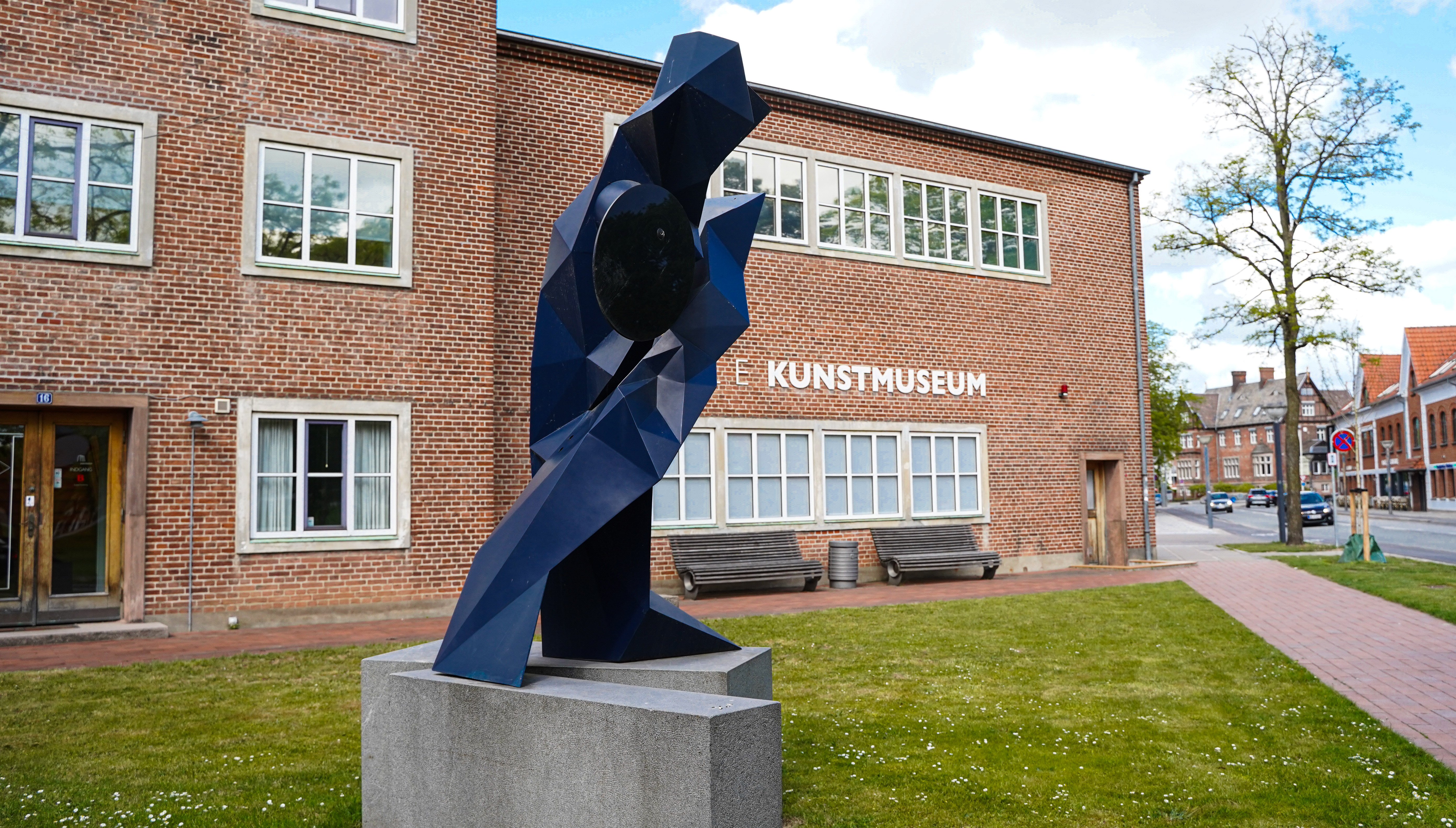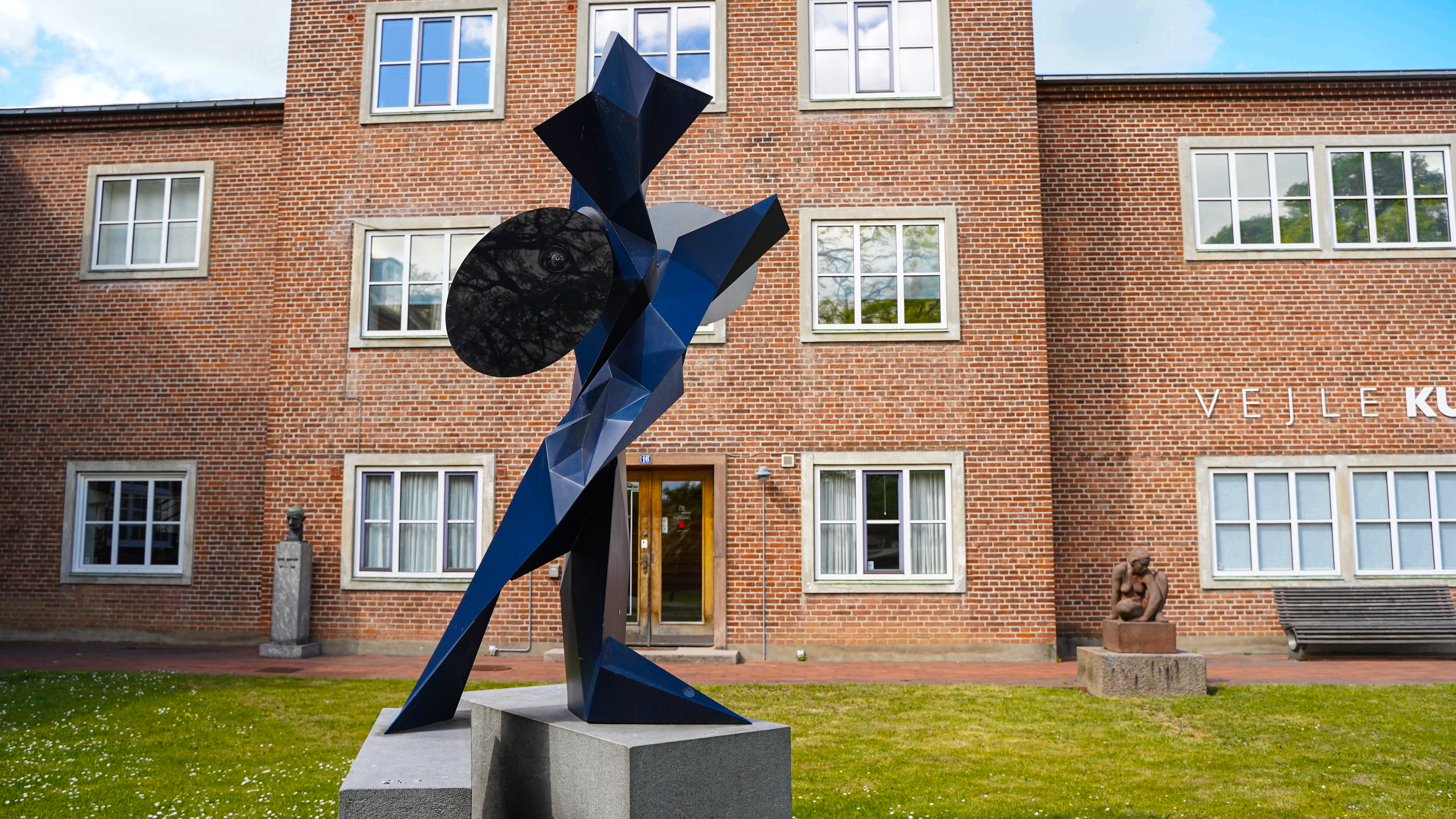 Morten Strædes skulptur, placeret ved Vejle Kunstmuseum, hedder Geist. Det betyder ånd eller spøgelse. Den store skulptur forestiller en skikkelse i bevægelse, med to ben placeret på hver af de to sokler. Skulpturen er hovedsageligt mørkeblå og abstrakt i formen.