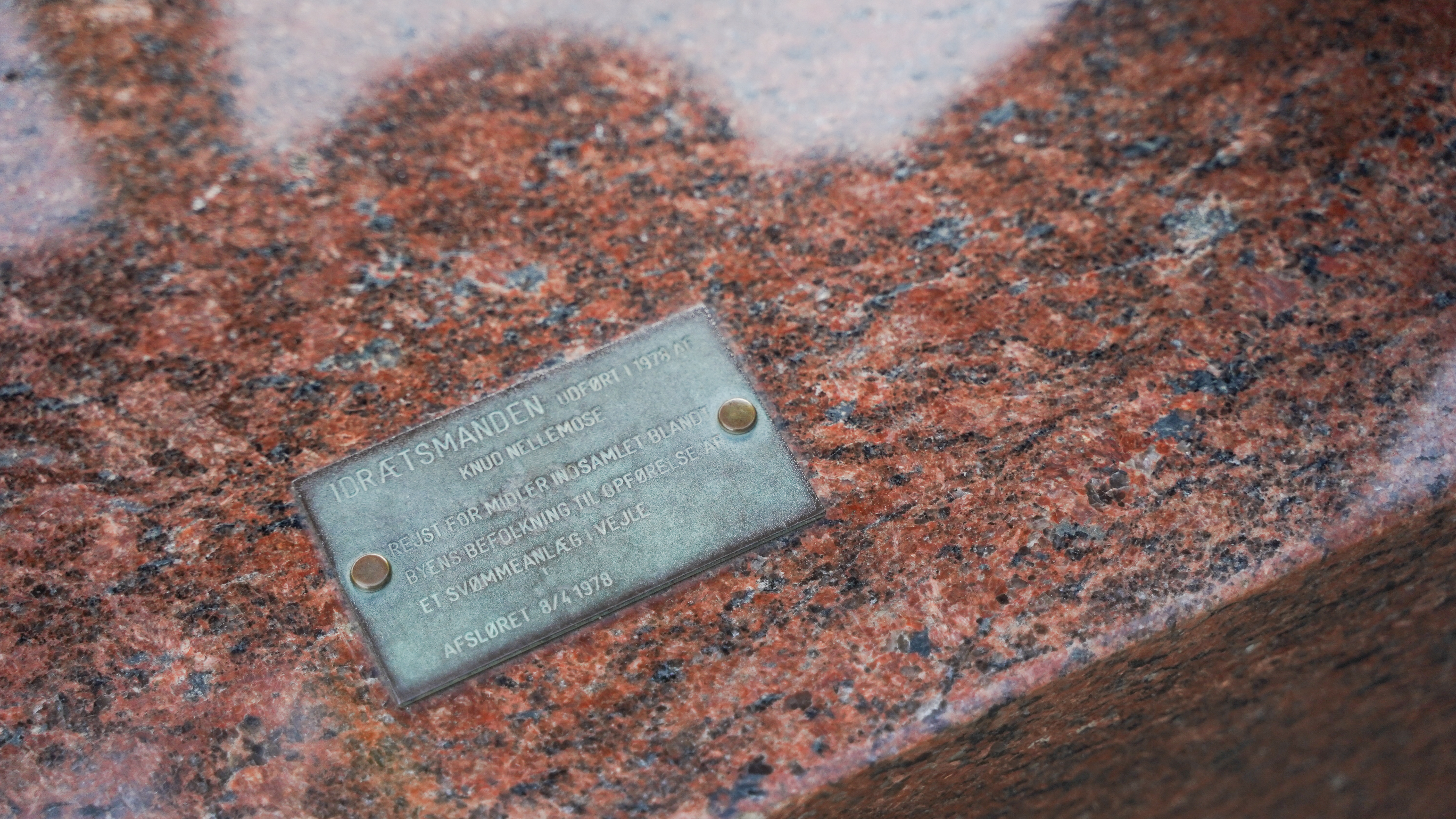 Skulpturen her blev indkøbt for det indsamlede beløb fra borgerne, der oprindelig skulle have været anvendt til opførelsen af Idrættens Hus. Skulpturen blev afsløret foran bygningen i 1978.