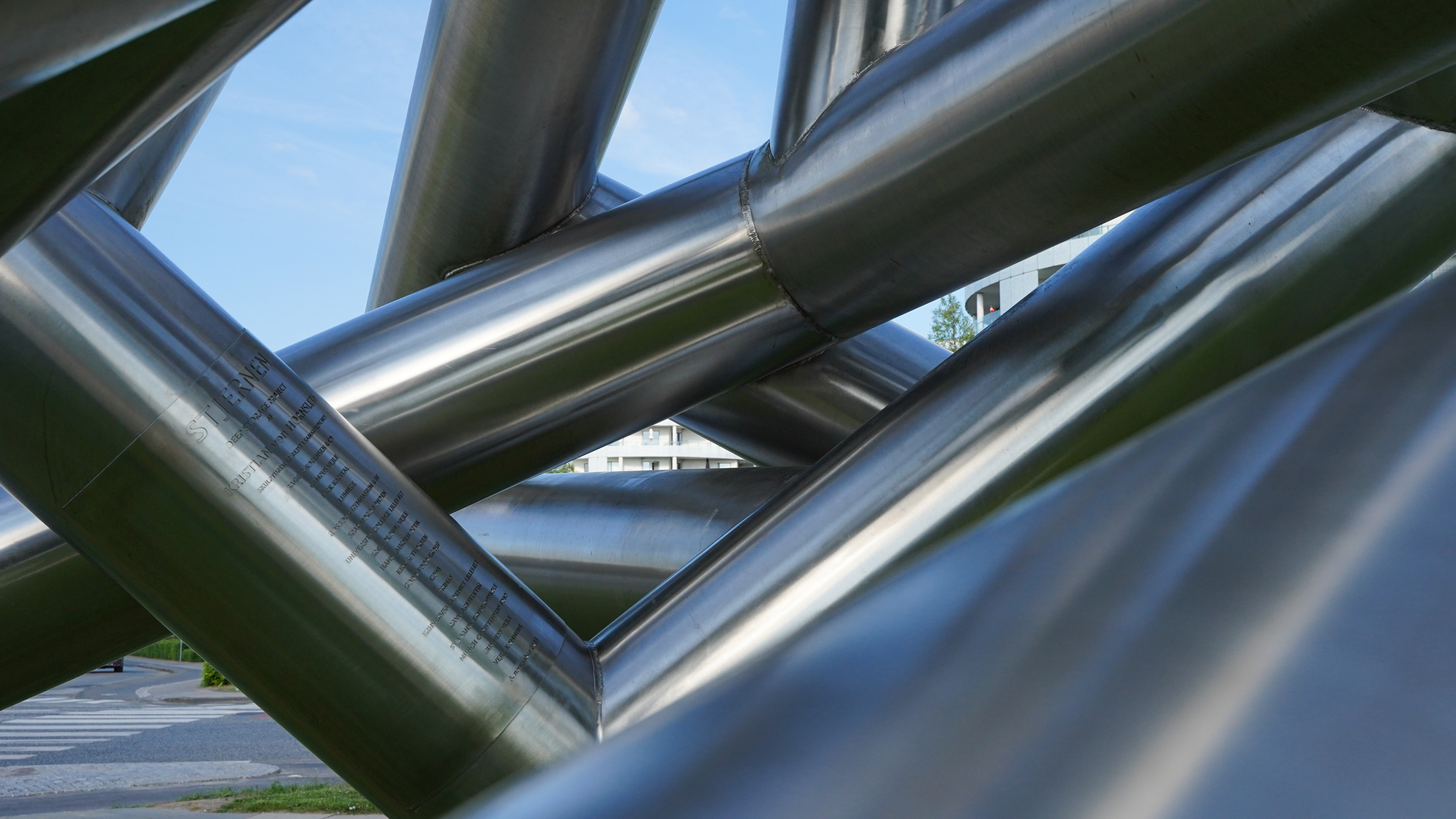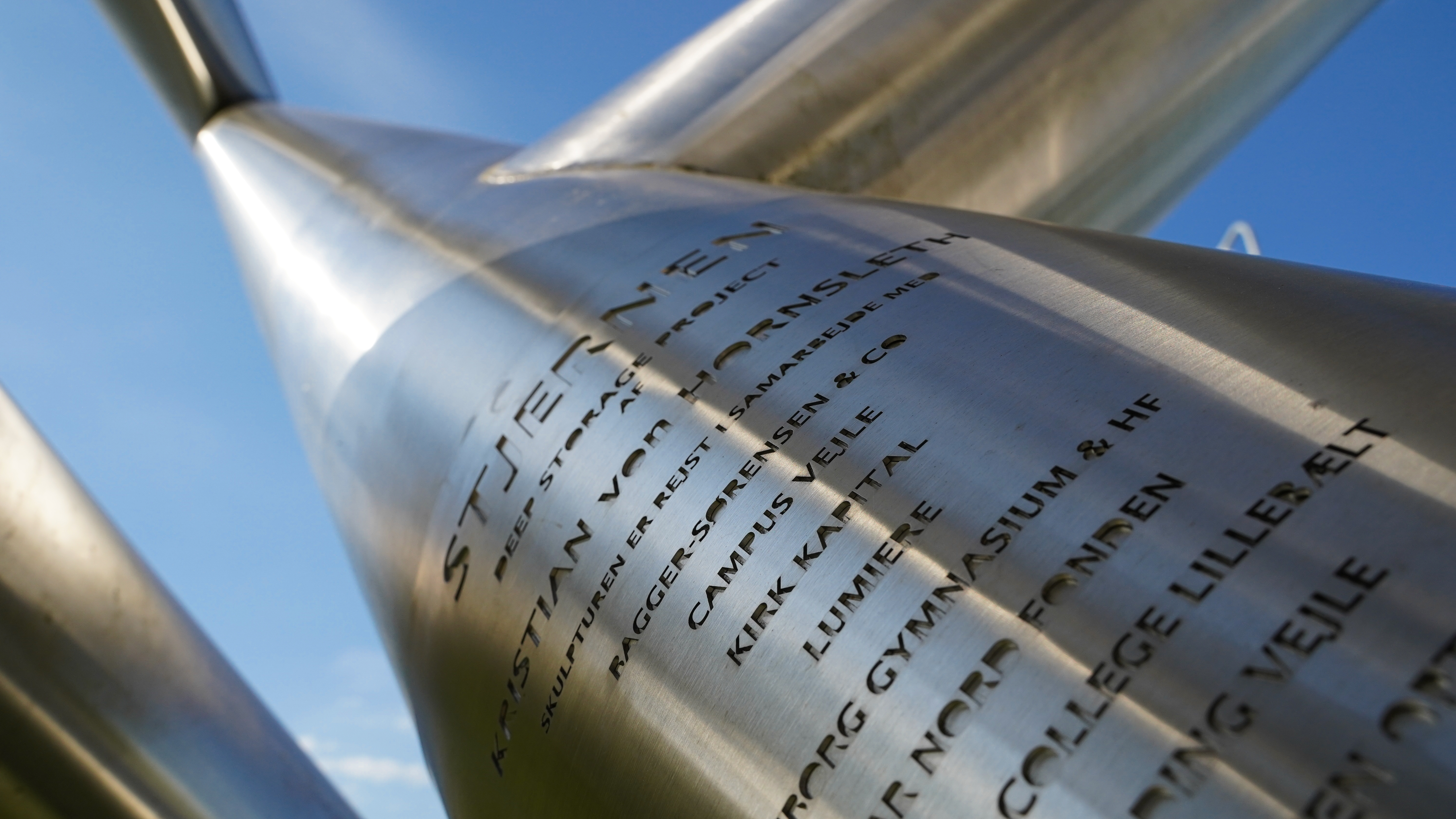Den store stjerne her ved biblioteket, er en del af Kristian Hornsleths verdensomspændende kunstprojekt, "Deep Storage Project". Der er to stjerner i alt, hvoraf den ene står her foran dig, og den anden befinder sig på bunden af Stillehavet.