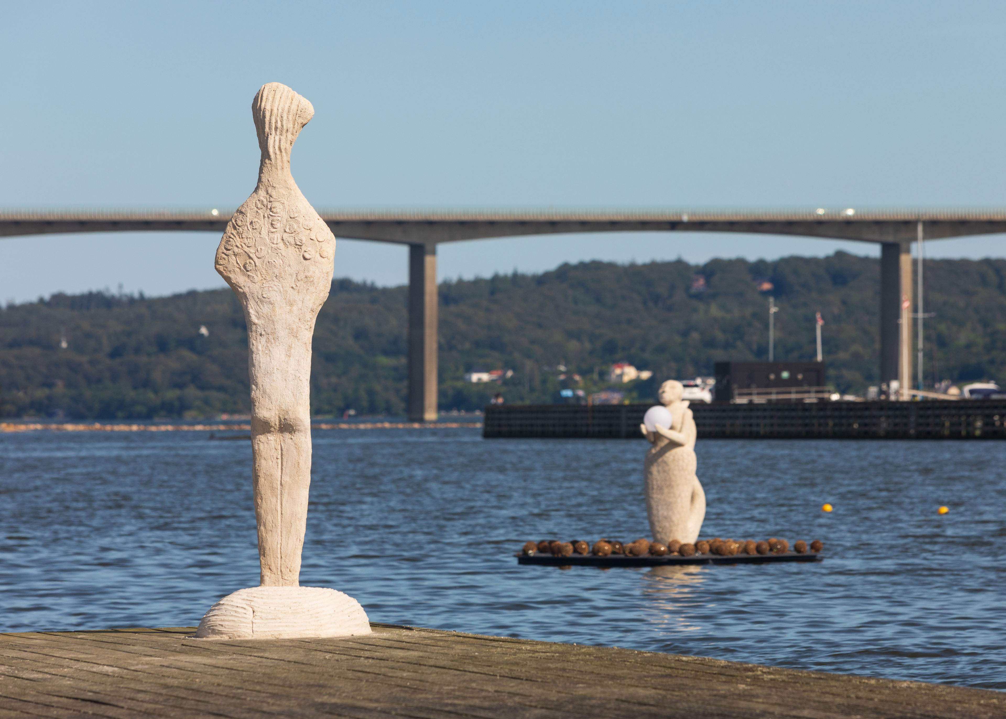 Marit Benthe Norheim er en kending på Vejle Fjord. Hun udstillede i 2017 sine berømte, flydende kvinde-skulpturer, ’Life-Boats’.