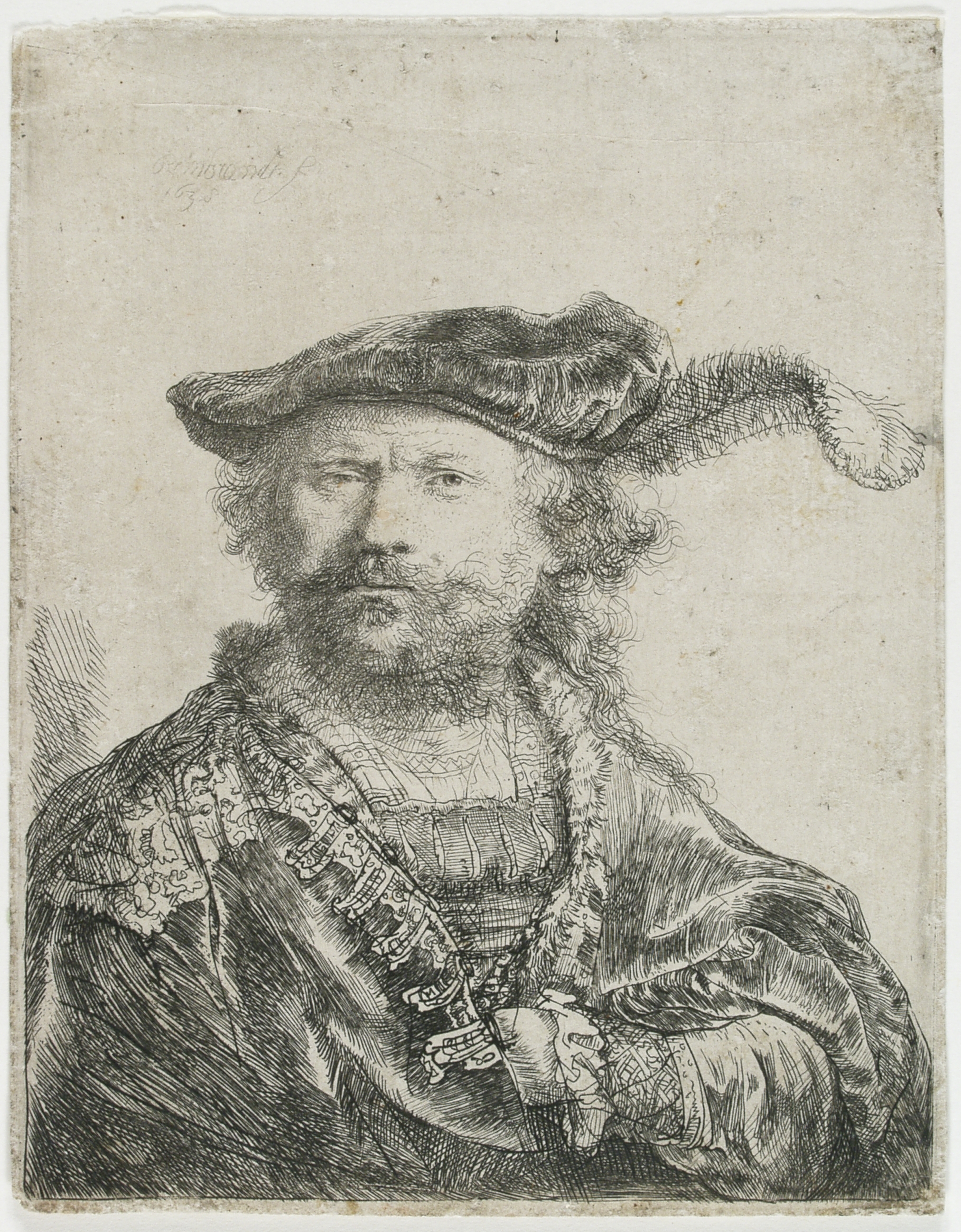 På samme tid fokuserer en af 1600-tallets største kunstnere Rembrandt van Rijn i sine kobbertryk på et møde mellem lys og mørke, der spejler et menneskeligt indre. Det kommer til udtryk i et udvalg af Vejle Kunstmuseums raderinger af Rembrandt (1606-1669), suppleret med indlån fra Statens Museum for Kunst, der også har en samling af Rembrandts raderinger. Hvor søkortene oplyser den omgivende verden ved at opmåle og kortlægge den, så åbner Rembrandts kunst for et indre mørke af umålelige dimensioner.